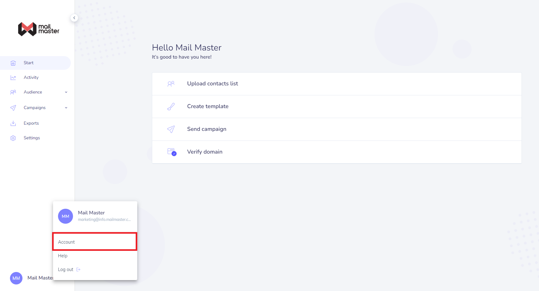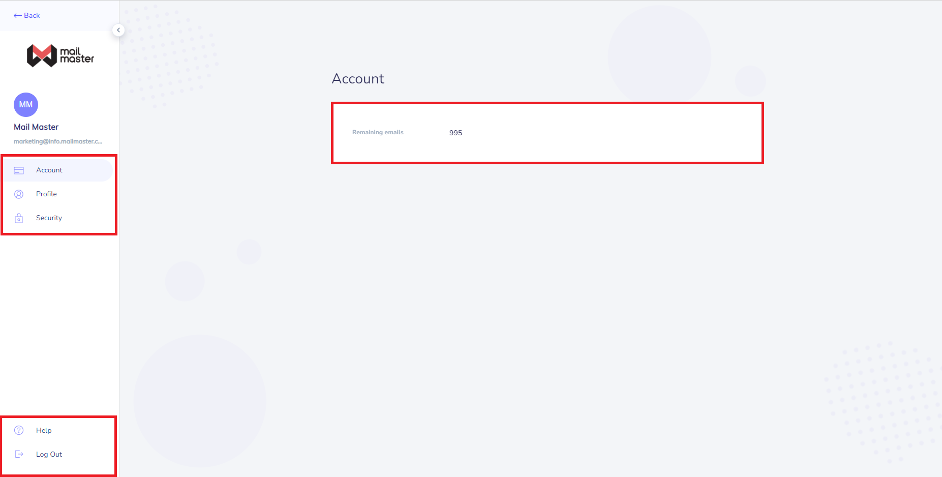 1. Account จะแสดงจำนวนอีเมลที่สามารถส่งออกได้ รวมถึง Limit Contact