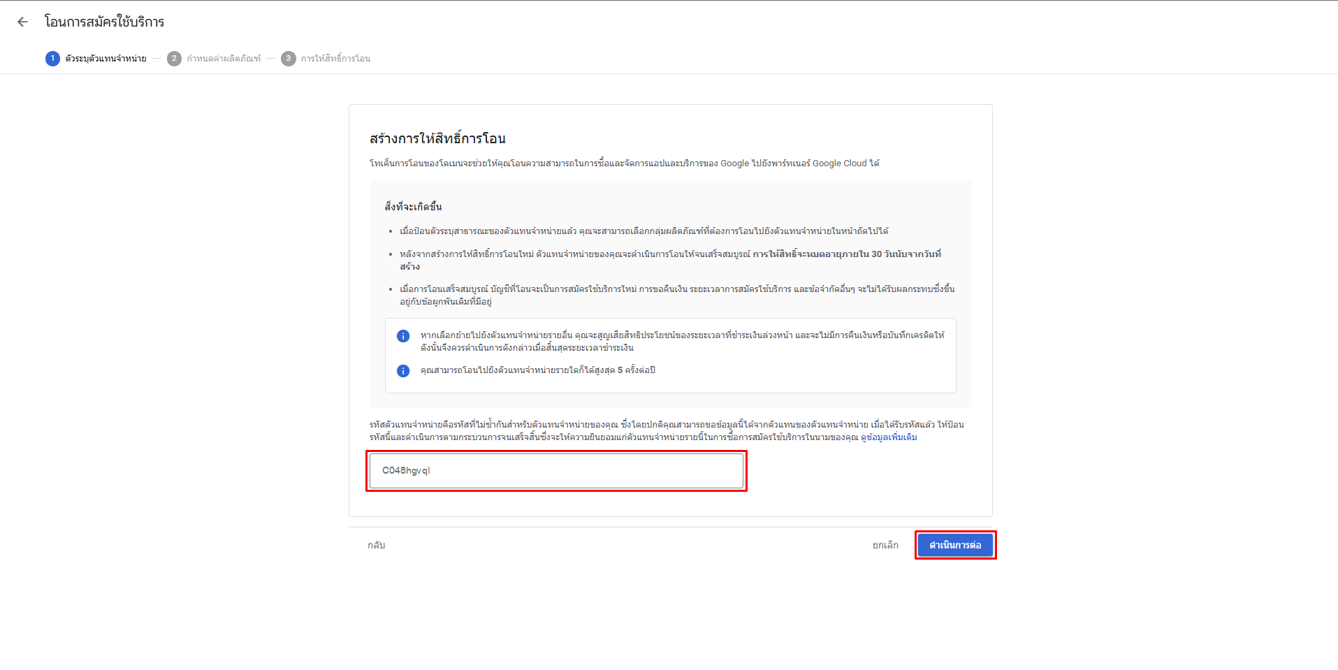 กด สร้างการให้สิทธิ์การโอน ตามภาพ