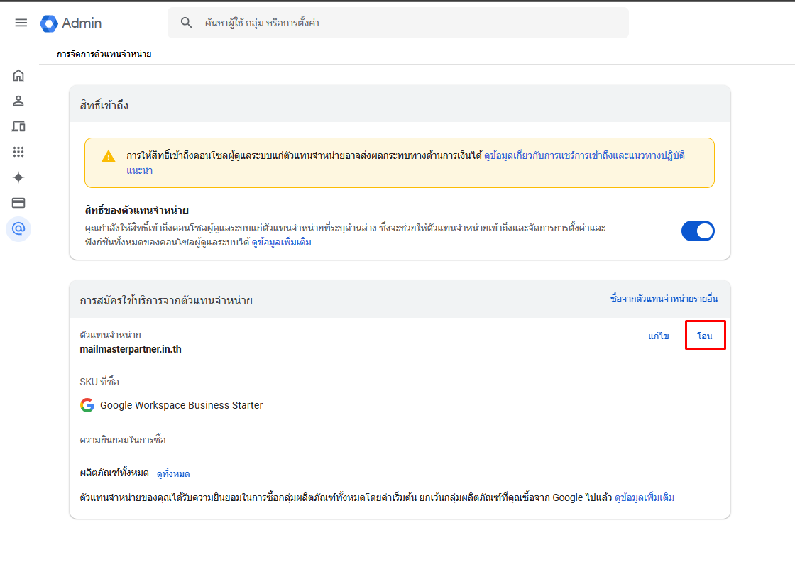 เข้าสู่ระบบ Google workspace ด้วยบัญชี Admin และเข้า Link https://admin.google.com/TransferToken