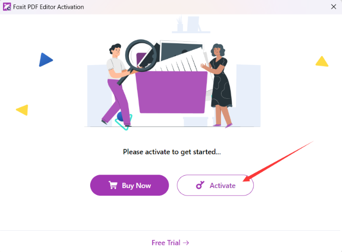 1.เปิดโปรแกรม Foxit PDF โปรแกรมจะนำเข้าสู่หน้า Activation ให้ทำการคลิก Activate