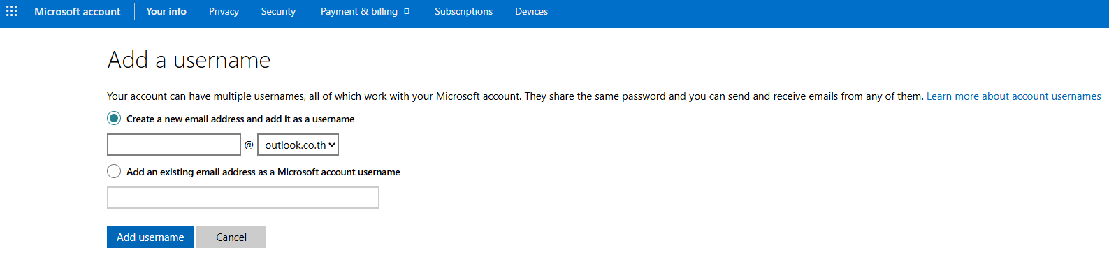 4.สามารถเพิ่มอีเมลได้เลย (อีเมลที่เพิ่ม จะต้องไม่เคยสมัคร microsoft account มาก่อนครับ)