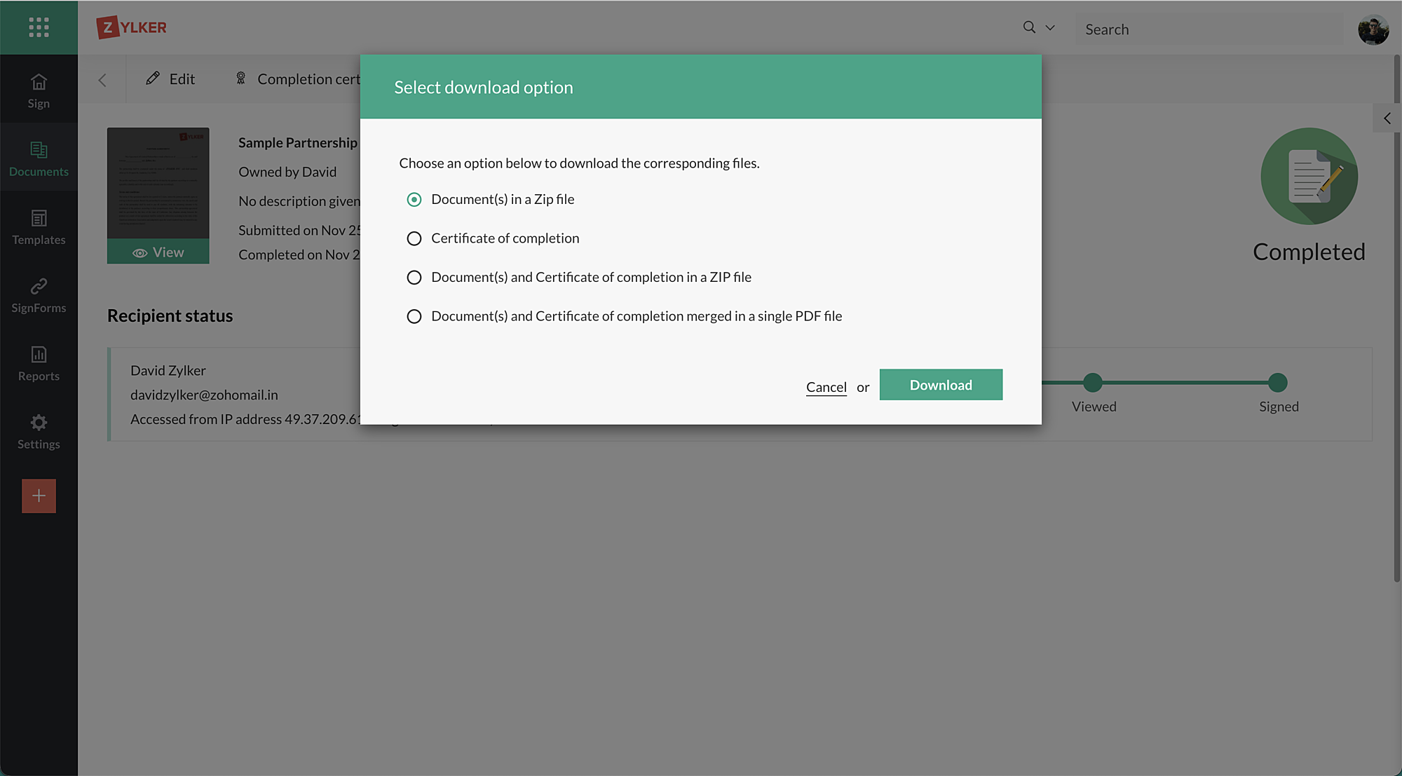 หากต้องการดูตัวเลือกการดาวน์โหลดเพิ่มเติมจากหน้าจอ ดูรายละเอียดของเอกสาร ให้คลิกที่จุดสามจุด ... แล้วเลือก Download