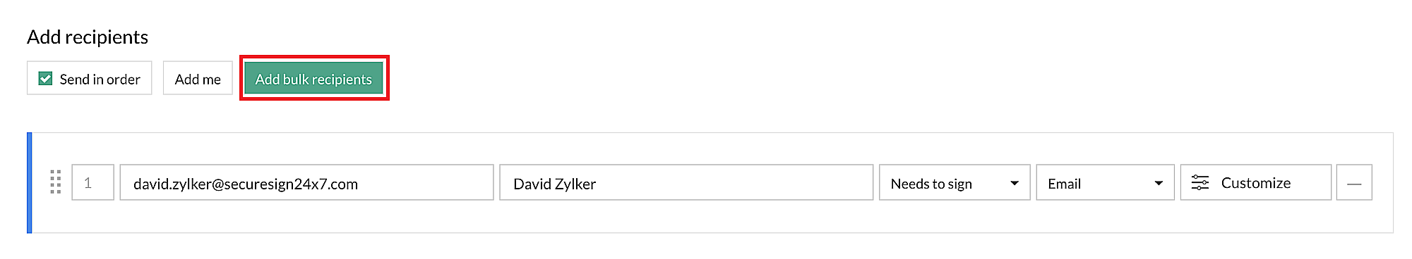 การเปิดใช้งานการลงนามในเอกสารโดยเลือกตัวเลือก Send in order สิ่งนี้จะส่งเอกสารไปยังผู้รับทีละคนเพื่อดำเนินการ