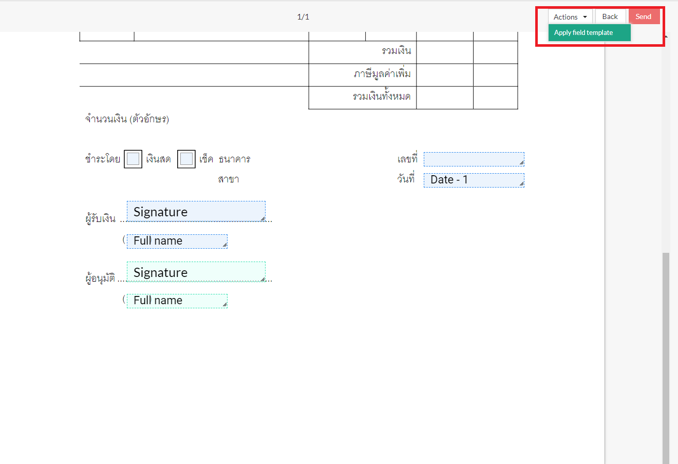 ในกรณีที่ช่องผู้ลงนามที่คุณต้องการเพิ่มในเอกสารมีอยู่แล้วในเทมเพลตที่บันทึกไว้