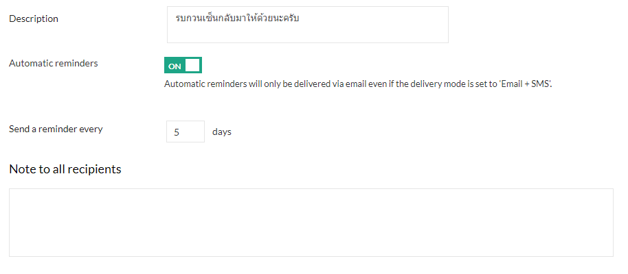 ป้อนข้อความให้ผู้รับเอกสารอ่านในช่องใต้หมายเหตุถึงผู้รับทั้งหมด