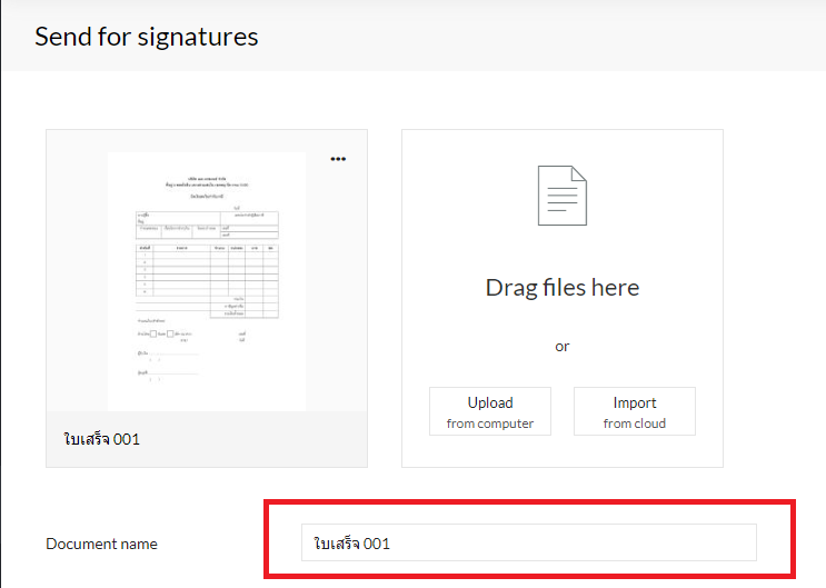 ขั้นตอนแรกคือการอัปโหลดเอกสารที่ต้องส่งออกเพื่อขอลายเซ็น