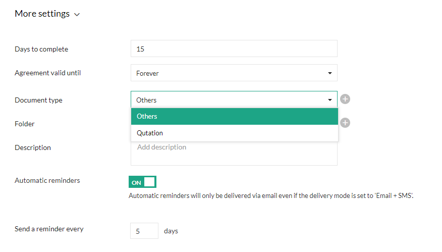กำหนดเส้นตายสำหรับผู้รับลงนามในเอกสาร (เป็นวัน) นับจากเวลาที่ได้รับ เอกสารจะหมดอายุหลังจากช่วงเวลานี้ และผู้รับจะไม่สามารถเข้าถึงได้หลังจากกำหนดเวลา